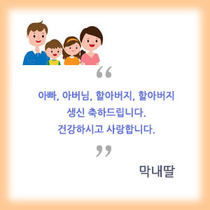 자손들의 마음을 더 잘 표현할 수 있도록 디자인적인 요소로 제작했으며 추가적으로 가족 구성원들을 카드에 넣어 좀 더 현실감이 들도록 구성했습니다.